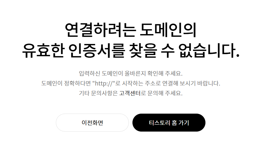 티스토리를 시작하면서 happytanuki.kr인 내 도메인을 연결하려고 하자 오류가 났다.
